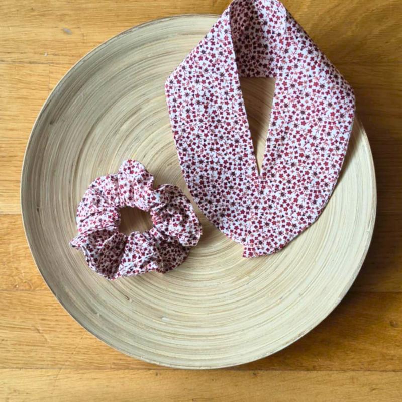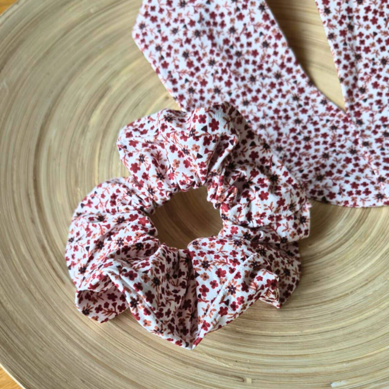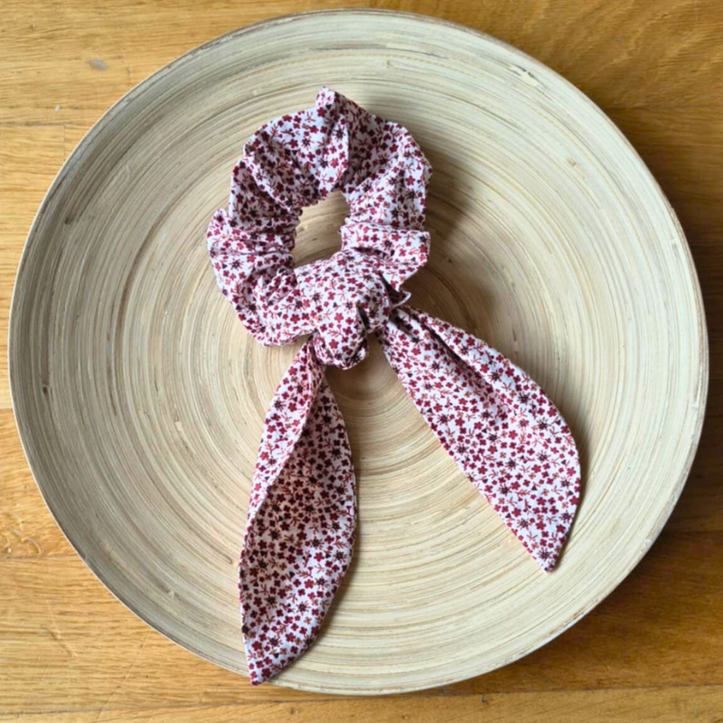 Confectionné à partir de chutes de tissu issues de la réalisation d’une robe, ce chouchou allie élégance et démarche zéro déchet. Son imprimé fleuri rouge rappelle les pages d’un roman d’amour annoté de marges poétiques. Grâce à son élastique plat et large, il respecte tes cheveux et s’adapte parfaitement au poignet sans serrer ni glisser. Le petit nœud amovible ajoute une touche de charme, comme un marque-page qui t’accompagne au fil de tes lectures cosy.